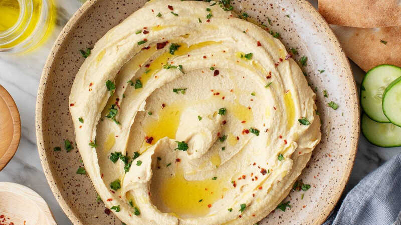Sốt Hummus được làm từ đậu gà, nó chứa hàm lượng lớn protein thực vật. Thêm gia vị với một ít hummus cùng với loại rau củ bạn yêu thích nhằm tăng cường protein cho cơ thể.