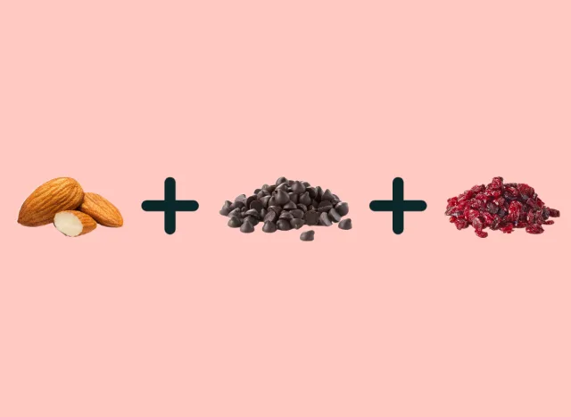 Hạnh nhân cung cấp độ giòn, protein và chất béo tốt cho tim mạch, trong khi quả nam việt quất cung cấp hương vị chua cay và vitamin C. Chỉ cần đảm bảo chọn loại được làm ngọt bằng nước ép trái cây thay vì thêm đường hoặc xi-rô để hỗ trợ tốt hơn cho việc giảm cân. Một khẩu phần nhỏ sô cô la đen cung cấp cho bạn hương vị ngọt ngào mà bạn đang tìm kiếm, nhưng vẫn giữ lượng đường bổ sung ở mức thấp, giúp bạn giảm cân nhanh hơn so với việc bạn sử dụng sô cô la sữa có thêm nhiều đường.