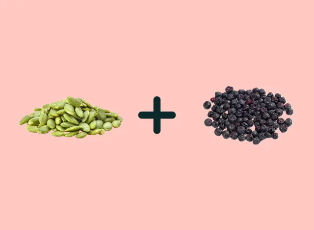 Đây là một hỗn hợp giàu chất chống oxy hóa, dễ làm và cân bằng. Hạt bí ngô rất giàu khoáng chất như kẽm, trong khi quả việt quất chứa vitamin C và K giúp cải thiện khả năng miễn dịch.